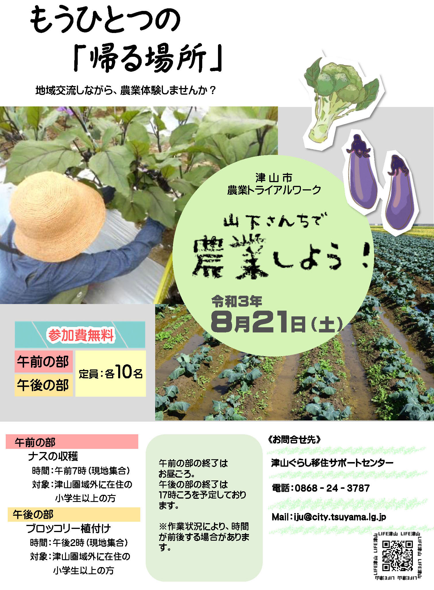 【参加費無料】8/21(土)津山市農業トライアルワークを開催します!